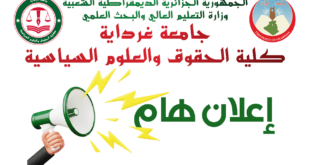 كلية الحقوق و العلوم السياسية جامعة غرداية بالتعاون مع مجلس قضاء غرداية ينظمان: يوم دراسي حول : R…