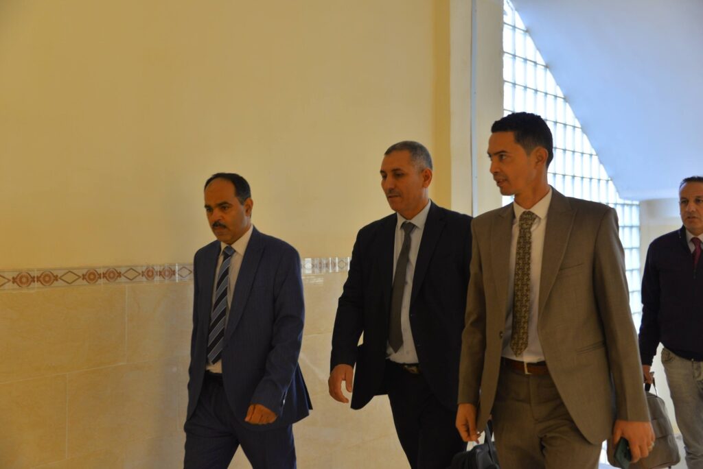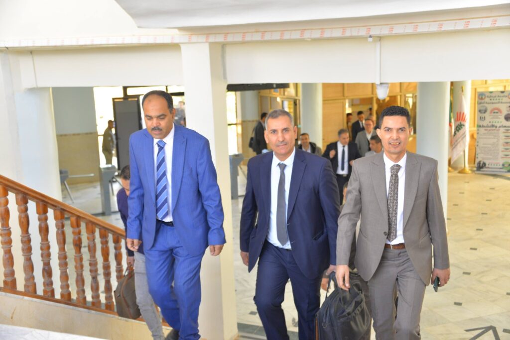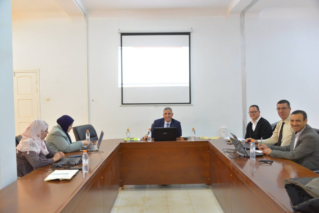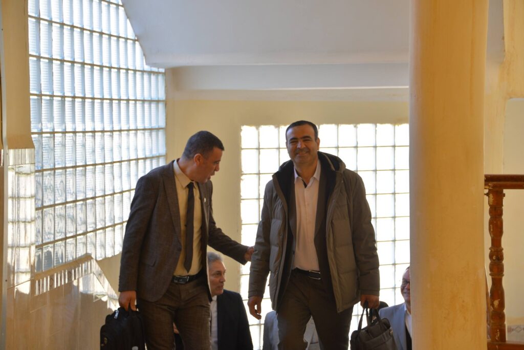 – حيث رحبت الكلية بقيادة العميد الأستاذ الدكتور فروحات سعيد، وفد اللجنة وعلى رأسهم الأستاذ الدكتور العطراوي كمال بالقاعة الشرفية للكلية.