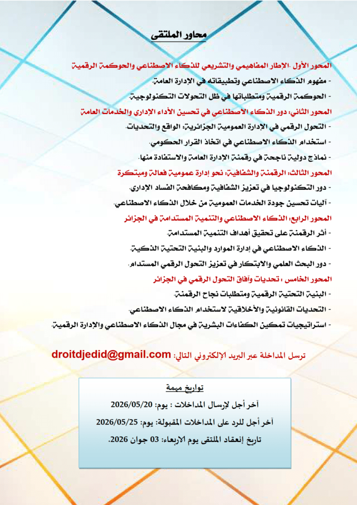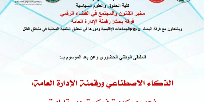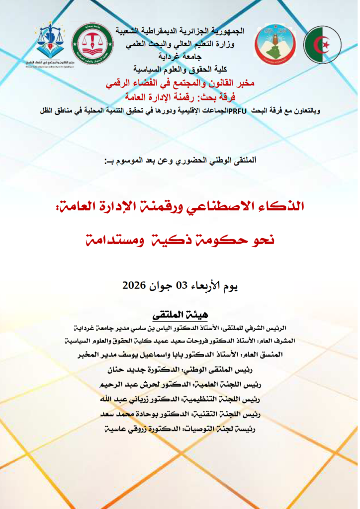 كلية الحقوق والعلوم السياسية مخبر القانون والمجتمع في الفضاء الرقمي فرقة بحث رقمنة الإدارة العامة وبالتعاون مع فرقة البحث PRFU الجماعات الإقليمية ودورها في تحقيق التنمية المحلية في مناطق الظل
