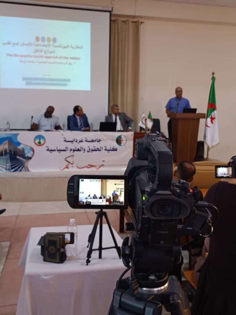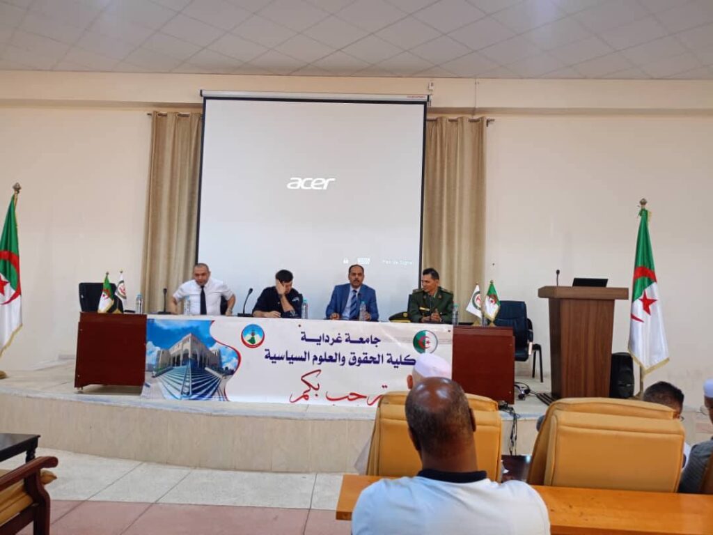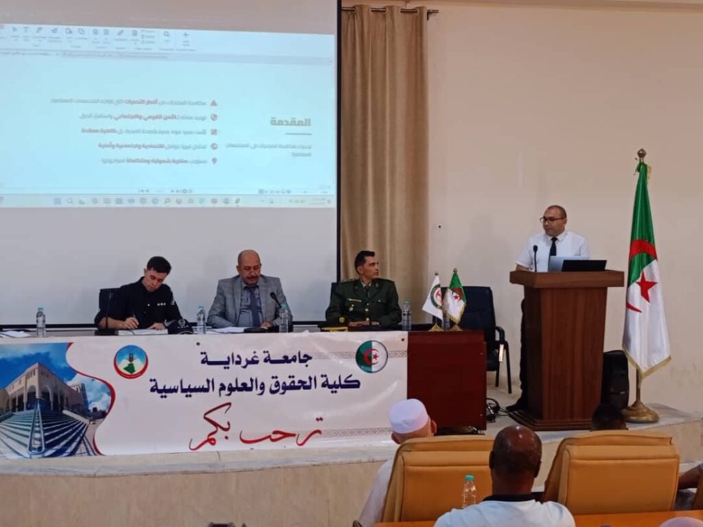 تم اليوم الموافق ل26 أكتوبر 2025 بكلية الحقوق والعلوم السياسية وبالتعاون مع مجلس قضاء غرداية، ونادي العدالة الطلابي ومشاركة السلطات الأمنية ومركز المساعدة النفسية بجامعة غرداية تنظيم يوم دراسي حول ( استراتيجية مكافحة المخدرات والمؤثرات العقلية وقمع الاستعمال والاتجار غير المشروعين بها في القانون الجزائري( الوقاية والعلاج ), وذلك بحضور :